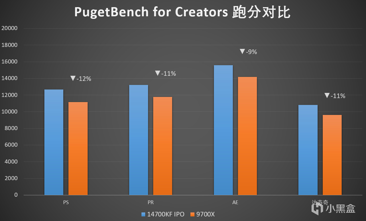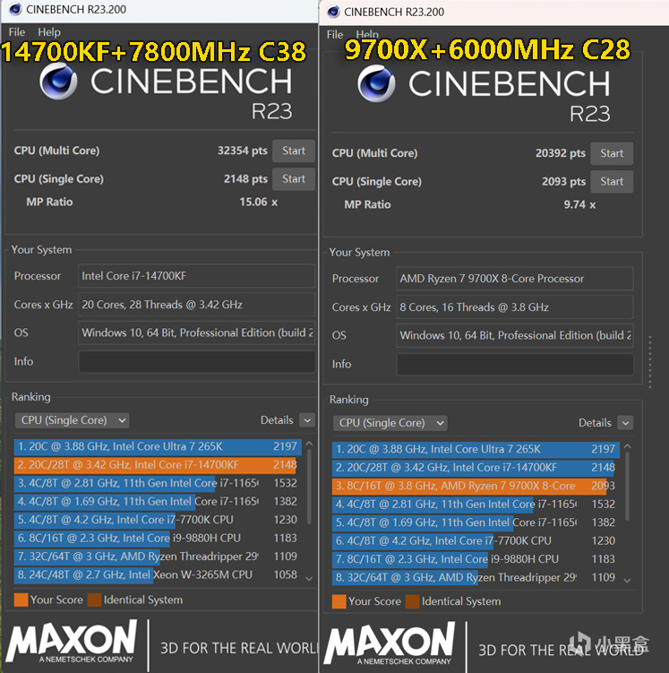 9700X平臺多核本身差不少,高頻和內存帶寬也都要低一些,這也是正常表現。