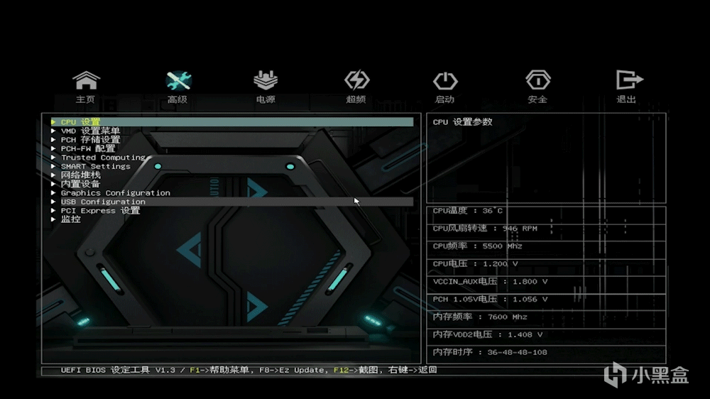 開啓後看了下,主要更改了內存參數,頻率7800MHz C38時序,還有幾個細節小參,電壓不高沒有較大發熱量。