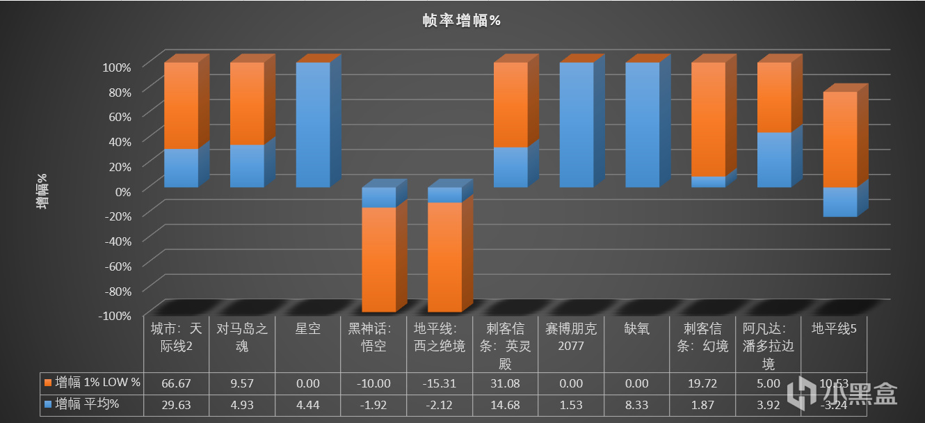 同樣選擇了時下比較主流的遊戲進行測試,均在 3.5K分辨率下進行,使用FPS monitor在同一場景記錄1min 的平均幀截圖,結果如上。