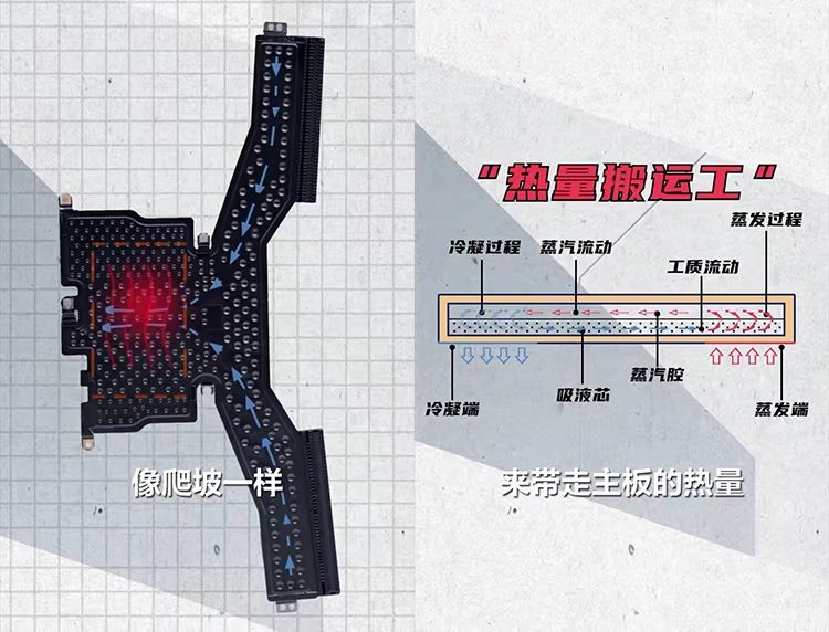 此外,散热设计的另一大亮点便是逆重力VC板。与传统笔记本不同,折叠屏电脑在展开使用时,主板的一端必须朝下,导致液态水流动受到重力的影响。为了克服这一问题,华为创新性地设计了逆重力结构,使得液体能够克服重力返回热源,进一步提升了散热效率。这一设计的巧妙之处,正如余承东所言:“它不仅能有效回流水分,还能提高散热效率,保障设备长期稳定运行。”