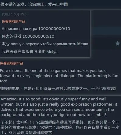 目前在Steam上,這款遊戲的Demo仍保持着100%好評率,但古怪卻不是這些評價的重點。看似和這款遊戲完全無關的浪漫、愜意和治癒,反倒成了它幽默外殼下的關鍵詞。