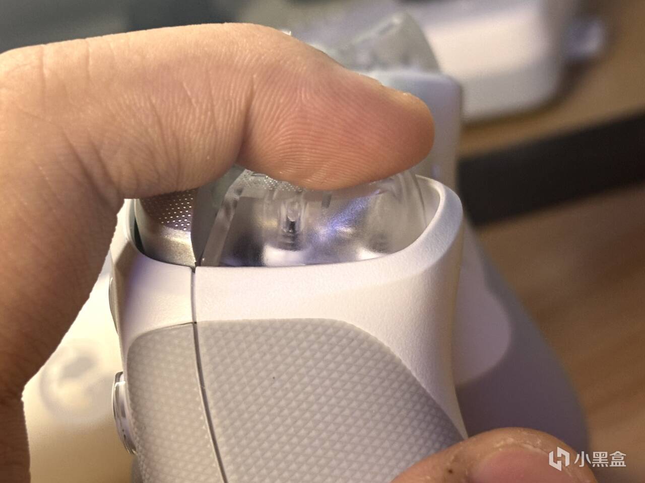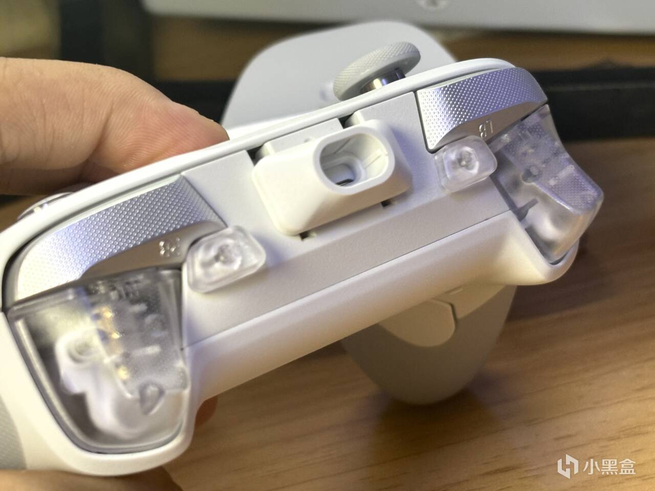 背部是兩個大背鍵,同時它居然還有背鍵鎖!說實話,這個設計我感覺還是挺好的,有時候自定義了背鍵,但是玩一些用不上自定義按鍵的遊戲,不小心按到,就挺煩的,這個背鍵鎖直接從根本解決問題,打開之後,按都按不下去~