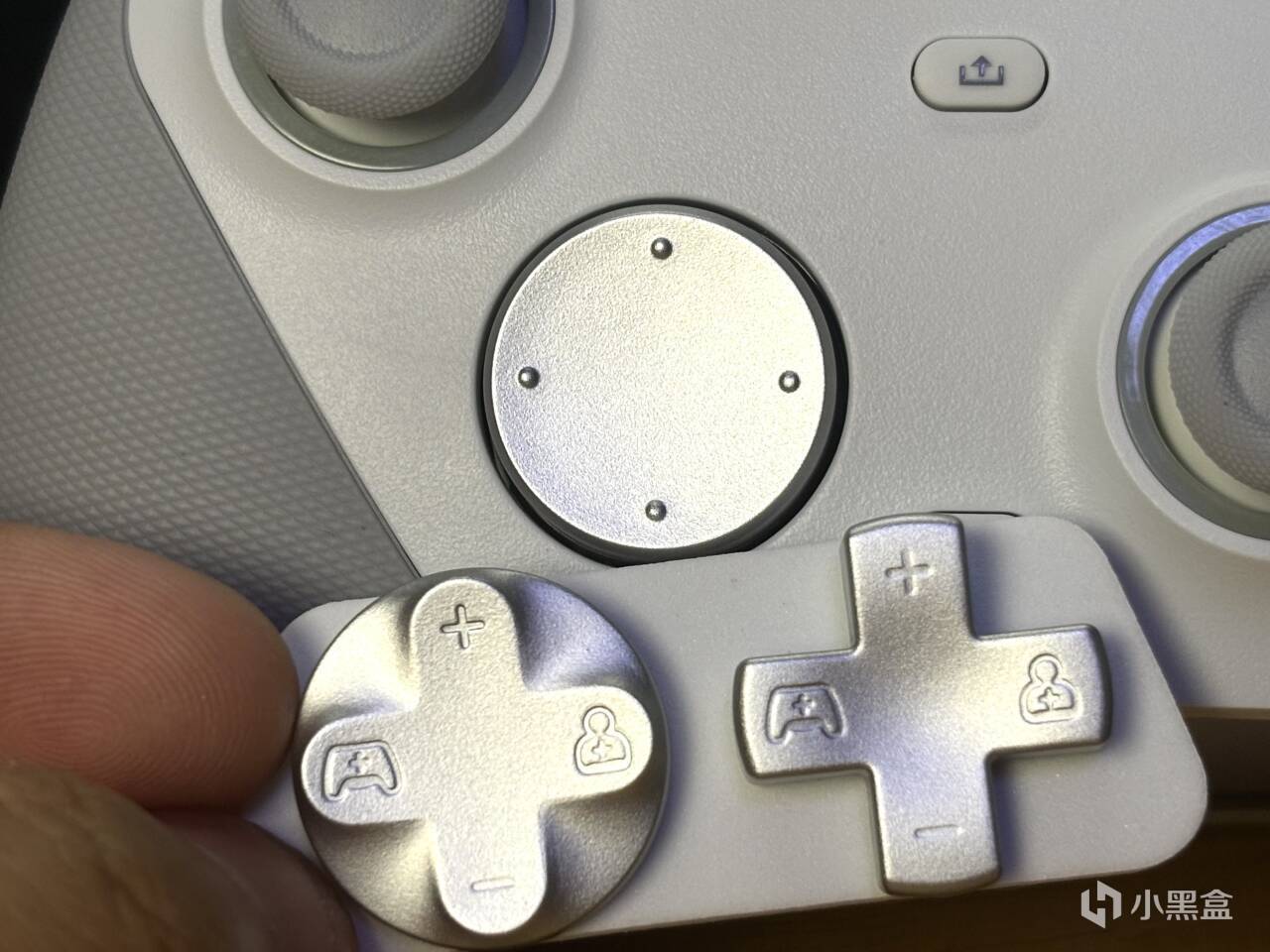 而在十字鍵方面,使用的是微動十字鍵,按壓下去的觸發還是非常靈敏的,同時標配了三款十字鍵可選,一體式的圓盤十字鍵,八向十字鍵和常規的四向十字鍵,可以說能應對市面上絕大多數的遊戲。