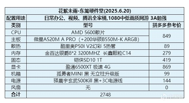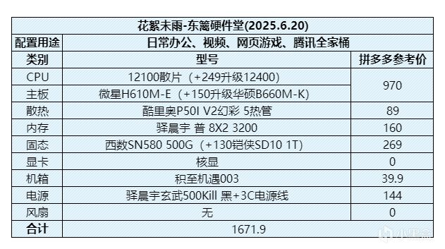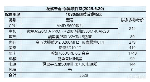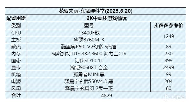 概預算帶來3套配置推薦,其中CPU套裝可以考慮換位英特爾13400F+B760M-K,預計貴430左右,最近英特爾降價 性價比還是蠻高的。