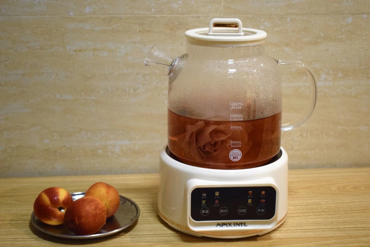 食品级全玻璃材质,干净通透,看着都赏心悦目,0抛光、0重金属、0胶水(底盘靠胶水粘合的水壶,胶水遇热易融化,有渗出风险,对身体健康是极大隐患),防干烧不糊底(具备防溢出、自动断电等安全保护功能),比普通恒温壶的功能更多,可烧水,可煮茶和甜品,堪称一机多用的典范。