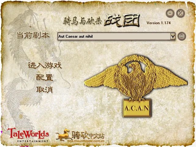 3、打開戰團,在戰團啓動器界面的當前劇本選項中選擇“Aut Caesar aut nihil”後點擊“進入遊戲”即可