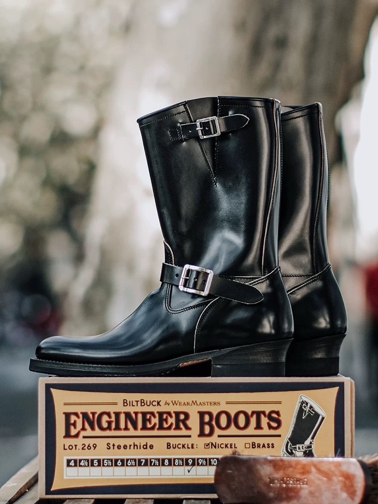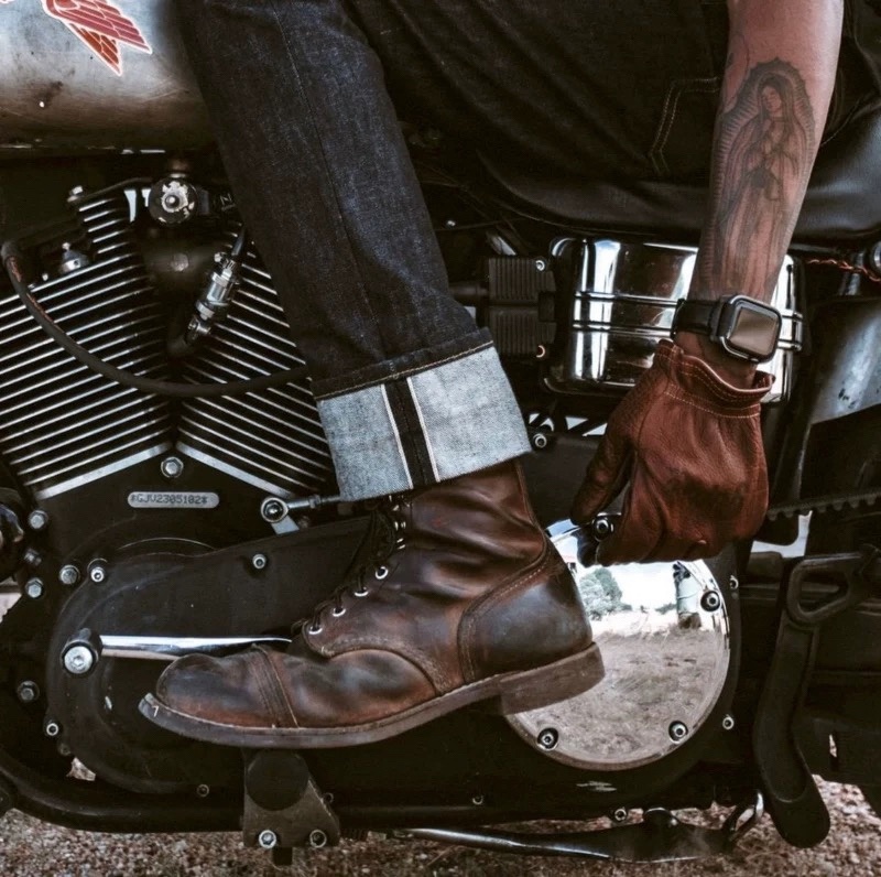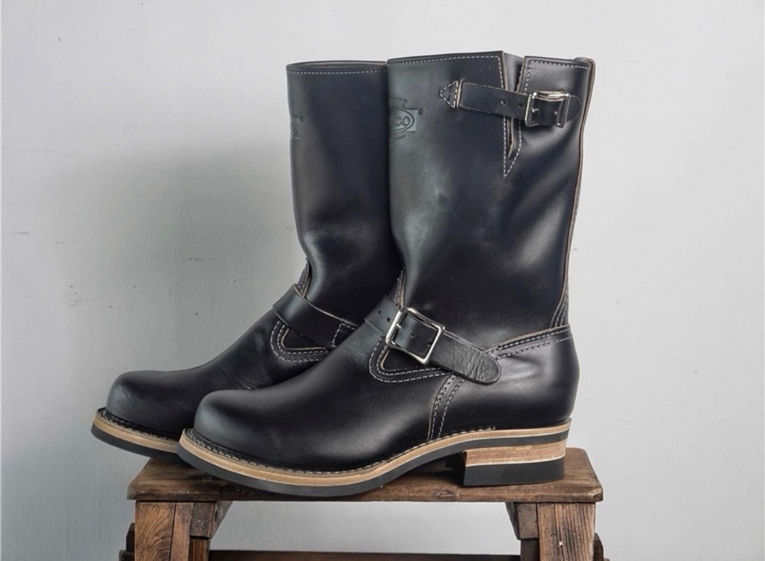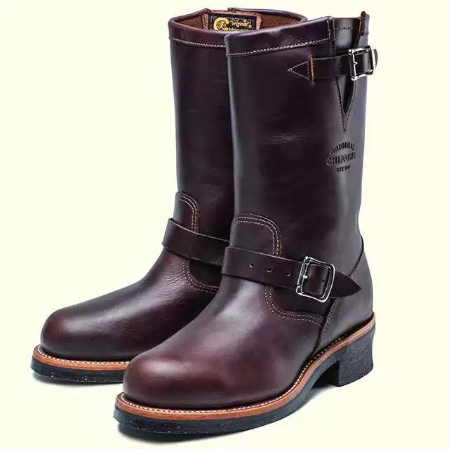 诞生于1930年代,为蒸汽机车司机,油田工人等打造,后被马龙白兰度带入流行文化,现为复古机车党的挚爱单品。超高鞋筒用于防油渣喷溅,马蹄扣可单手调节尺寸,取消鞋带防止被机器卷入,一切以保护工人为出发点,是双好鞋。适合搭配重磅牛仔裤,井下工作裤,但穿脱不便,沉重,不适合作为入门之选。