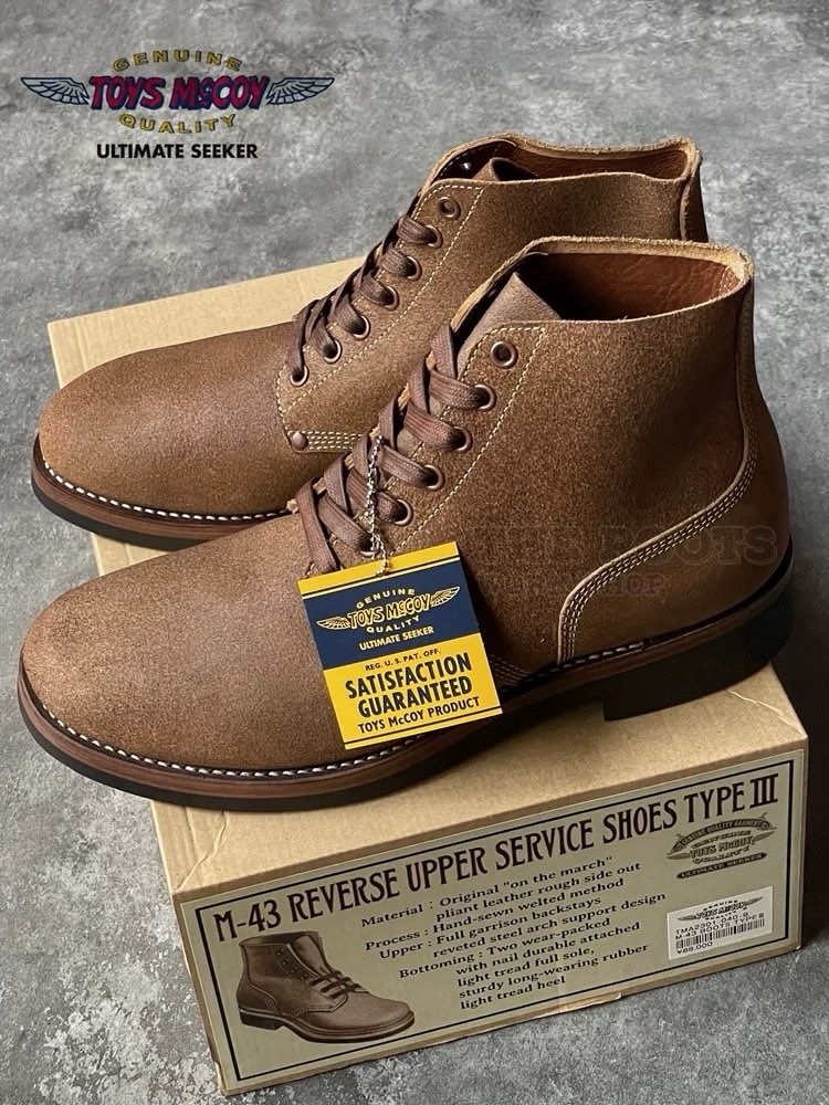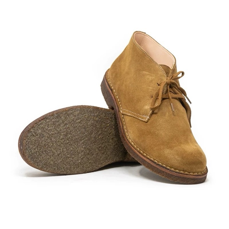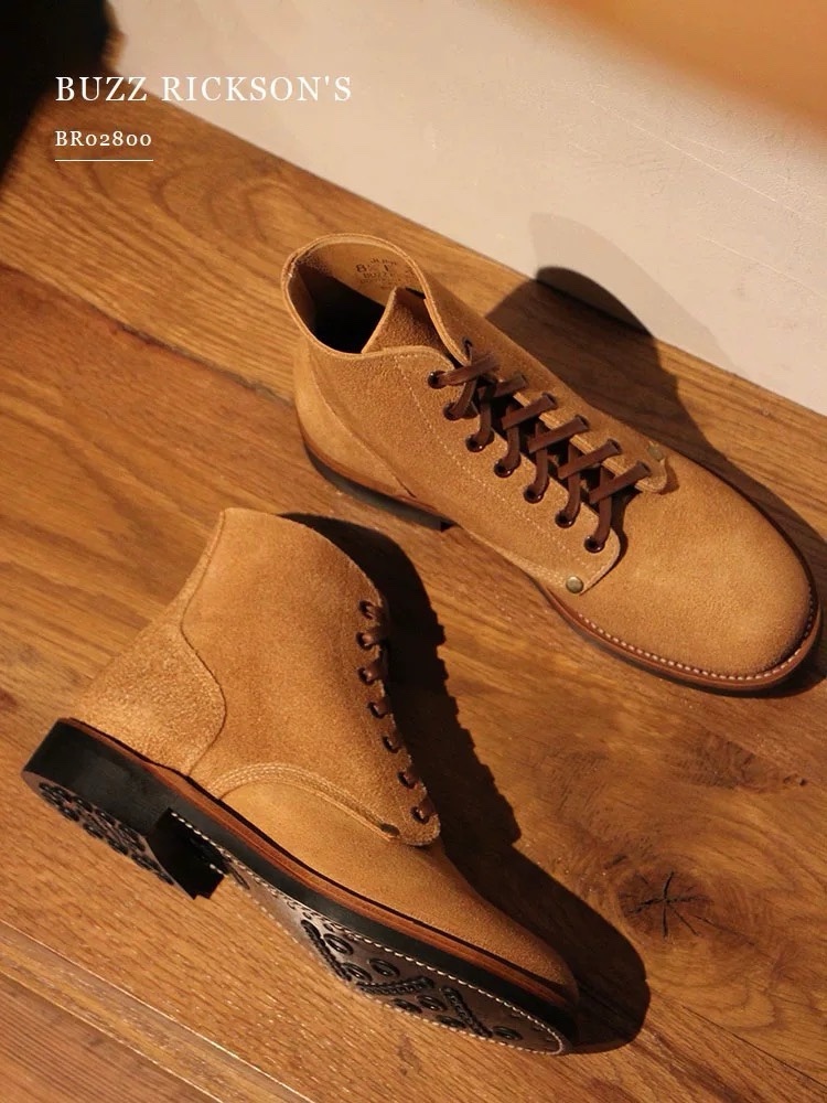 主要用于沙漠穿着,防沙透气,速干麂皮鞋面,耐高温生胶底(易脏易化)早期为北非战场打造,千禧年成为日系阿美咔叽定番产品,所以也一起放工装靴介绍了。