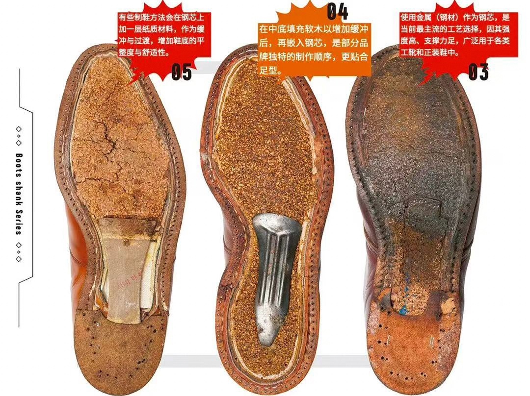 内里与鞋底的填充物,足弓支撑也大有讲究,是现代科技前时代劳动者的智慧结晶。