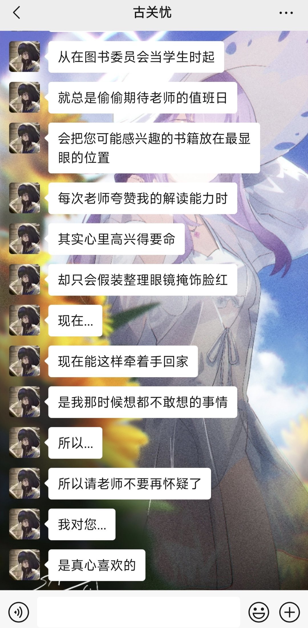 全文大概多少字忘了,配備了多少個表情包也忘了,什麼內容也忘了,反正就是古關憂的AI人設吧~~