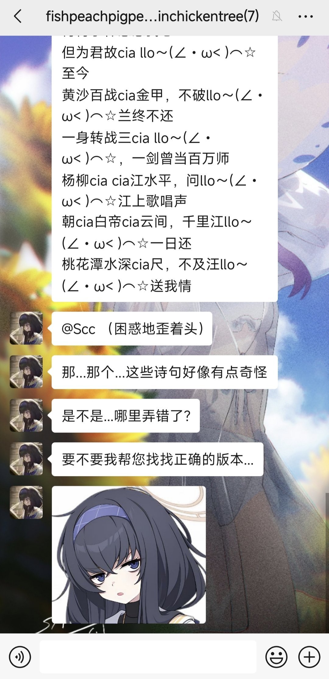 現在的學生真是太浮躁了,雖然你有自己的安排,但是你就不能把時間花到我的安排上嗎,今天必須把Ciallo~(∠・ω<)⌒☆詩一字不差的全部背下來,評論區隨機抽人檢查