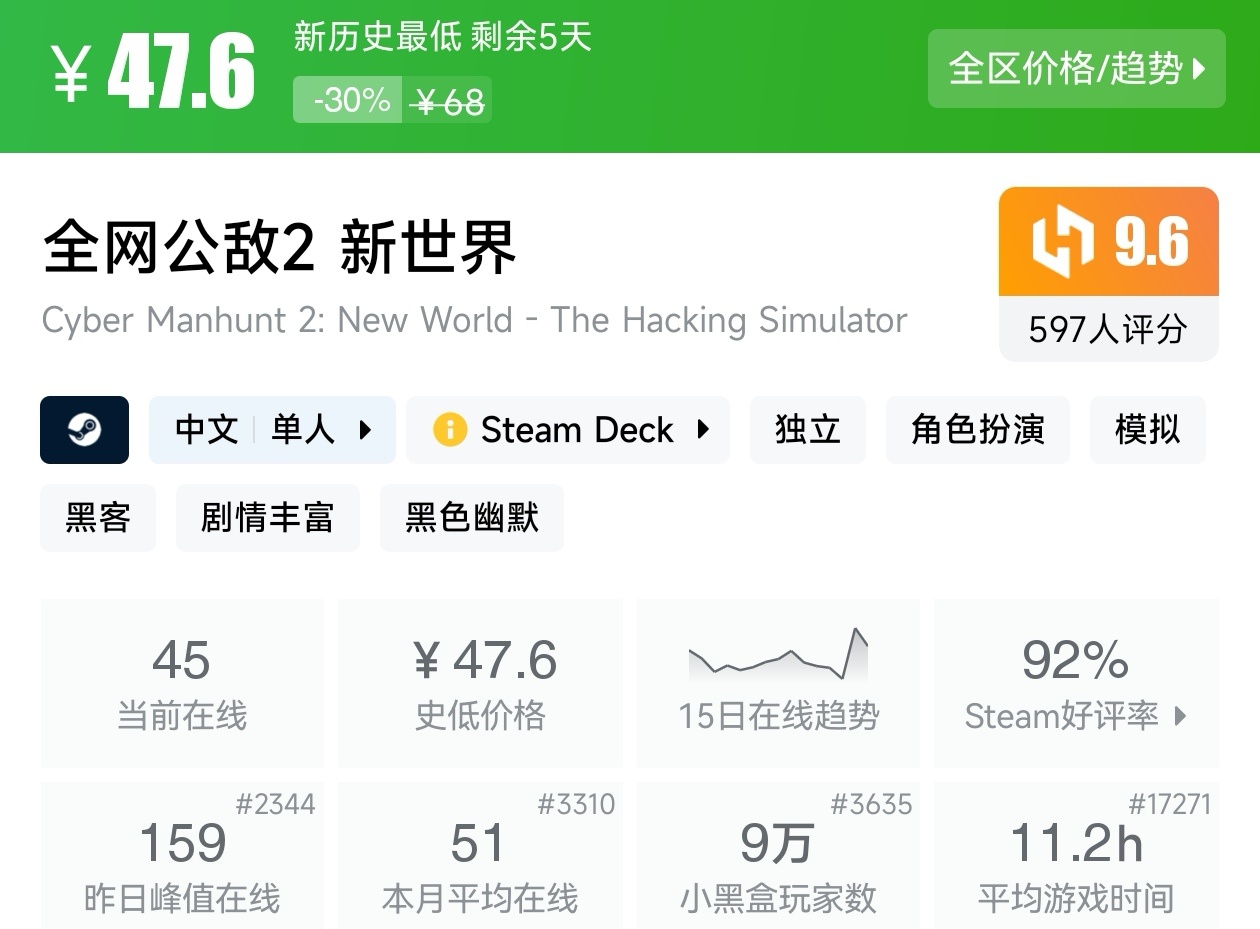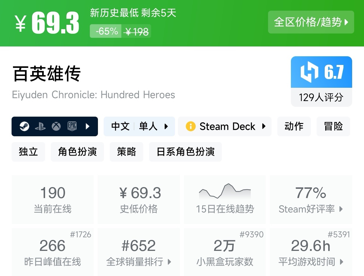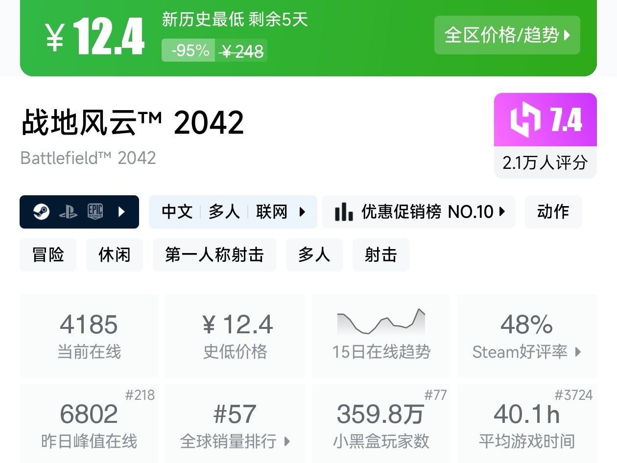 大家好,没错,又是我,你们的老朋友亦然,在最近,夏促这不是快到了,当然每次大促,都会有很多游戏抢跑,夏促自然也不例外,在其中新史低游戏更是多,那么,就跟我去看看有哪些,其实新史低游戏买起来最有安全感,至少在很长一段时间都不会更低,我将为各位进行一个汇总,希望我的汇总,能够帮助各位盒友挑选心仪的游戏。