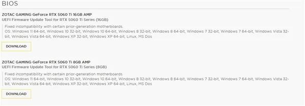 今天,索泰为旗下RTX 5060 Ti系列显卡发布了新版BIOS,解决黑屏问题。