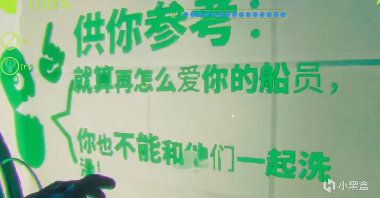 开头所说的缺乏引导问题,在正式版更新后并无改善,我大概意识到制作组把它作为一个游戏特征进行保留了:你在进入游戏后会进行房间大小的选择,1-2,3-4,5-8三种规模对应不同潜艇,而你能获得的所有操作引导也只是刻画在潜艇墙上的只言片语——其中还有一半的插科打诨,沉浸感和趣味性这块拉满了,但是没人带的情况下就相当折磨了。