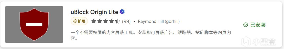 前者uBlock Origin Lite是一个不需要权限的内容屏蔽工具。安装即可屏蔽广告、跟踪器、挖矿脚本等网页内容;安装好了就可以用了,网站浏览的速度会变快,