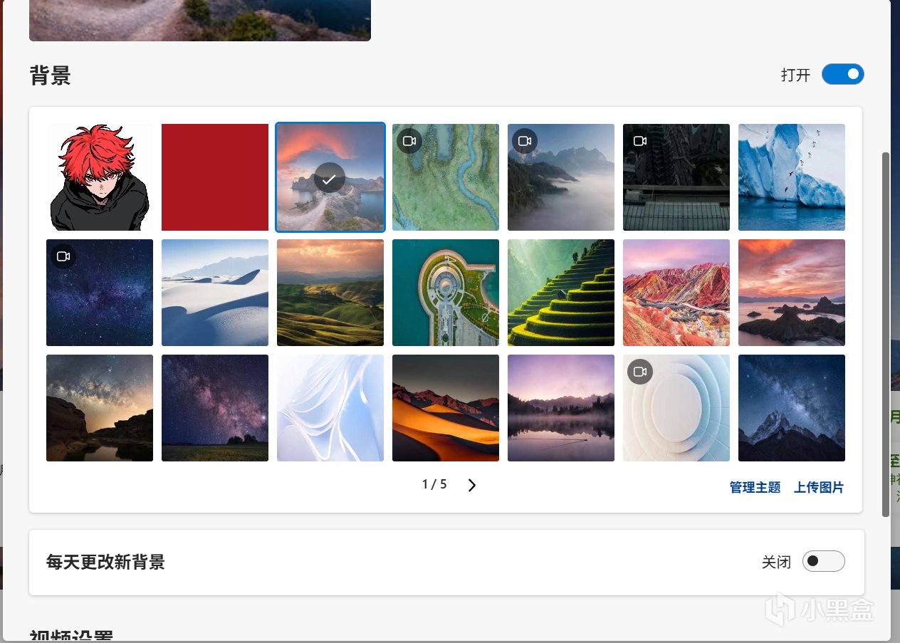 “背景”可以随意挑选,自己上传照片也可以,“自定义主题”我们前面就调整了,“内容设置”是跟“显示小组件”相关的,不需要调整,默认是“天气,财经,体育和日历”,都算有用信息。