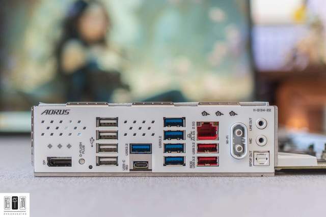▼尾部I/O 接口提供了极为丰富的扩展能力,总计包括 4 个USB 2.0、5 个 USB 3.2 Gen1、2 个 USB 3.2 Gen 2 Type-A,以及 1 个高速 USB 3.2 Gen 2 Type-C 接口,充分满足各类外设的连接需求。