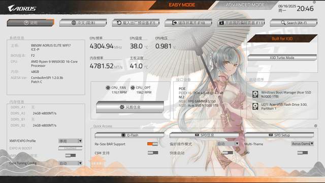 主板:B850M AORUS ELITE WIFI7 ICE-P 雕妹