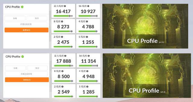 ▼3DMark CPU Profile 测试:这项测试更贴近实际游戏应用中的多线程表现