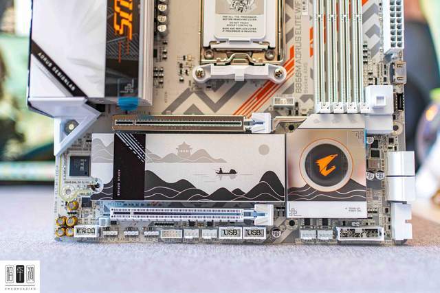 值得一提的是,插槽周边的国风垂钓与鹰头等设计元素,也为这块科技产品增添了独特的艺术美感。