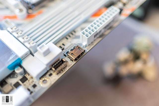 ▼单 8PIN 的 CPU 供电接口采用了实心插针,确保与电源接头连接紧密,为平台的稳定运行提供了多一重保障。