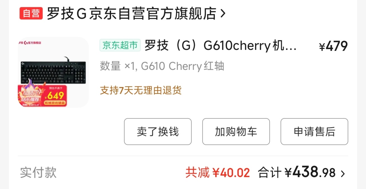 我下了点本,换了个罗技G610红轴,438元,第一次买这么贵的键盘,但用起来是真的不错。几个月前没用了,送给一个缺键盘的盒友。