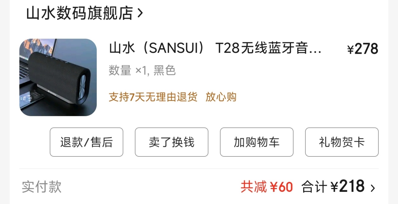 我选择了山灵T28,218元的蓝牙音响,声音很大,音质也不错。体积也不太大,也能户外使用。
