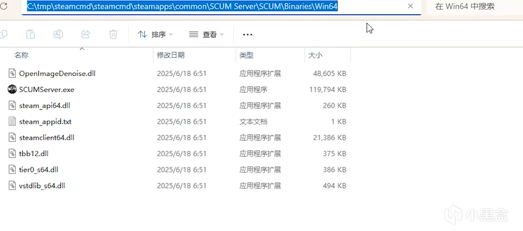 在这个文件中依次找到steamapps/common/SCUM Server/SCUM/Binaries/Win64,复制整个路径