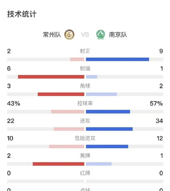 南京队在雨中发挥稳定,上下半场各入两球,全场4球零失,这是常州队本赛季的第五场失利,仍未打破零进球的尴尬纪录。