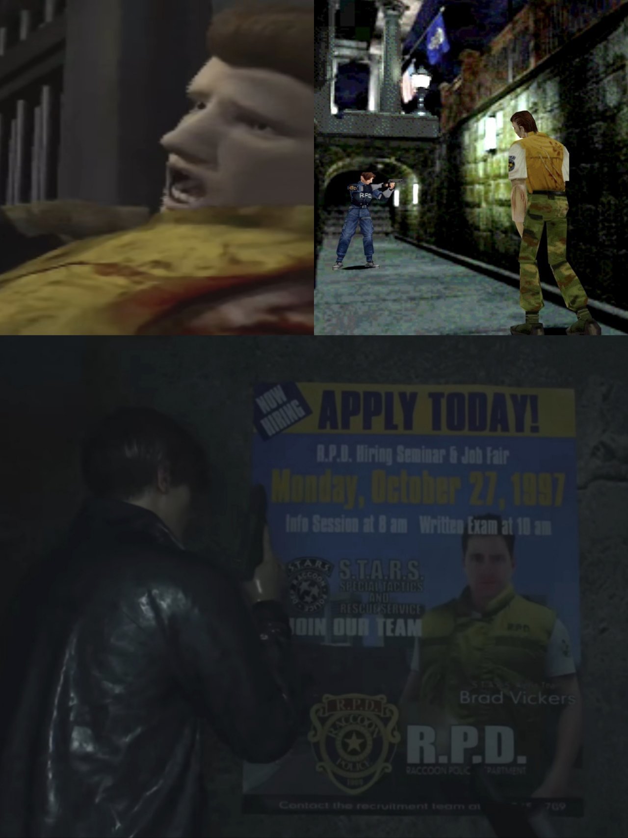 在2代重製版的demo裏裏昂在警局門口右側可以聽到3代的追蹤者的唯一一句臺詞:STARS