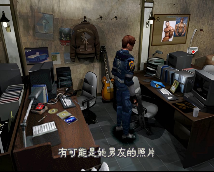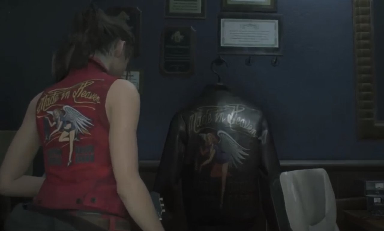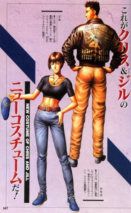 ↑Jil和Chris在RE96原版的額外服裝,克里斯的夾克在RE2中成彩蛋,掛在他STARS桌子旁邊的牆上