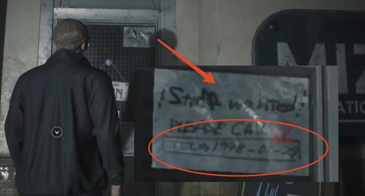 在開始的加油站的商店門上,貼有一張招員工的通告,通告裏留的電話號碼是1998-01-29,這是原版《生化危機2》的發售日