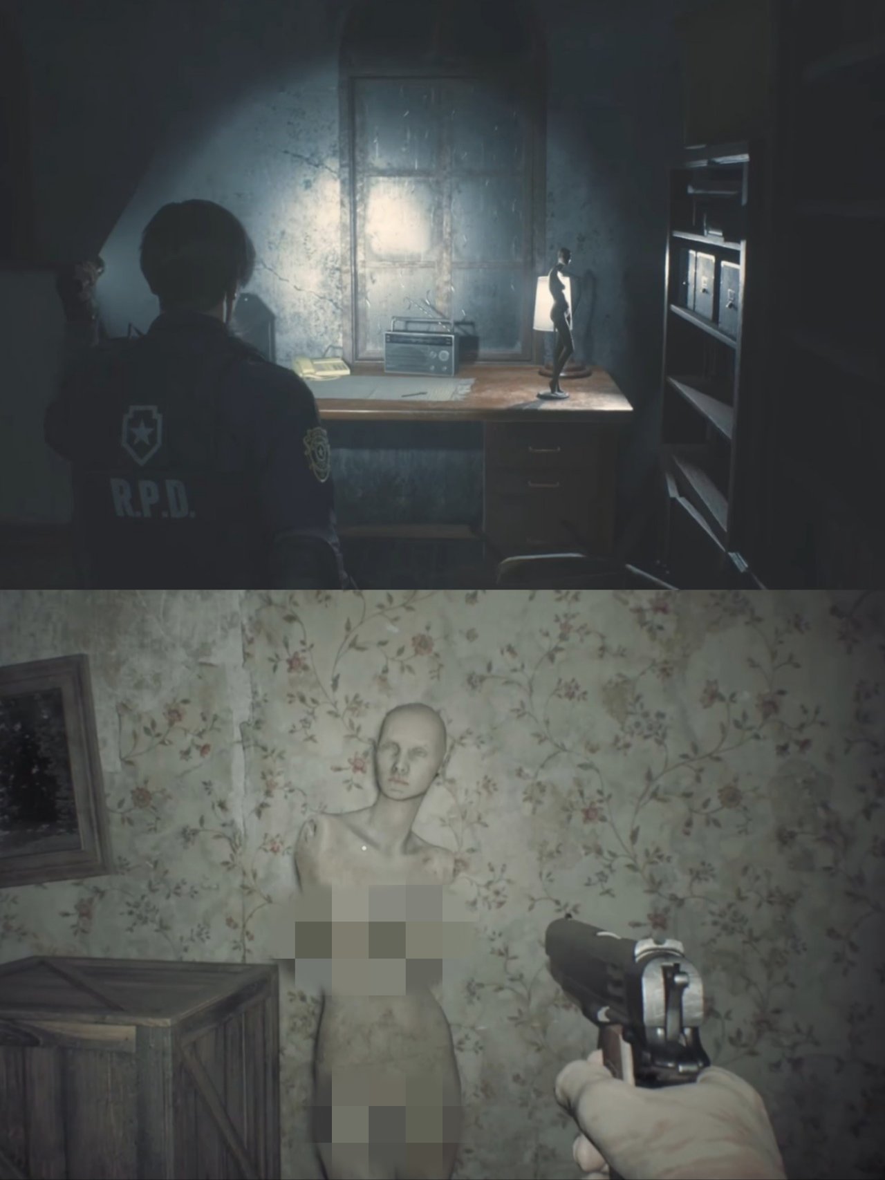 原版裏調查其辦公桌會看到照片是一名男性,可能是其男友,在重製版裏這張照片變成了她的愛犬(