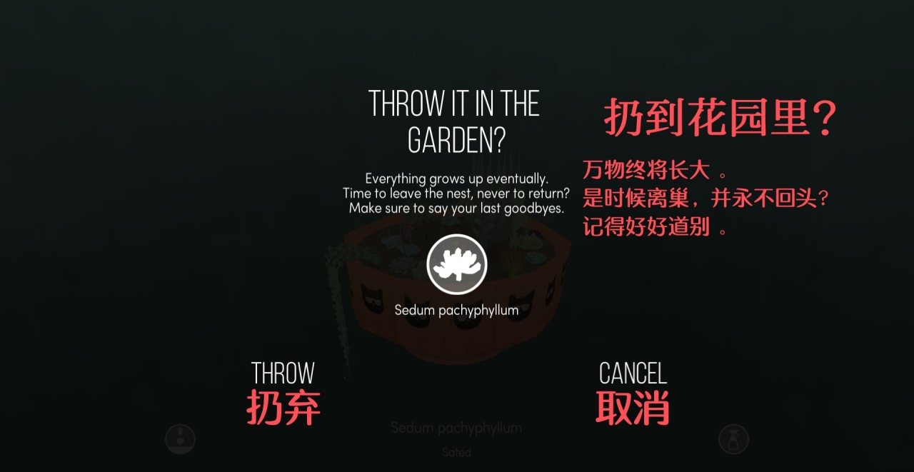 如果盆栽裏面的植物死亡,或者爲了完成相關遊戲成就的話,可以選擇使用“丟棄”功能👋