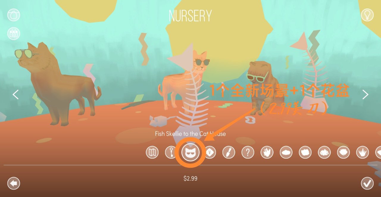 這3個項目都可以各自增加1個新的花盆和1個場景