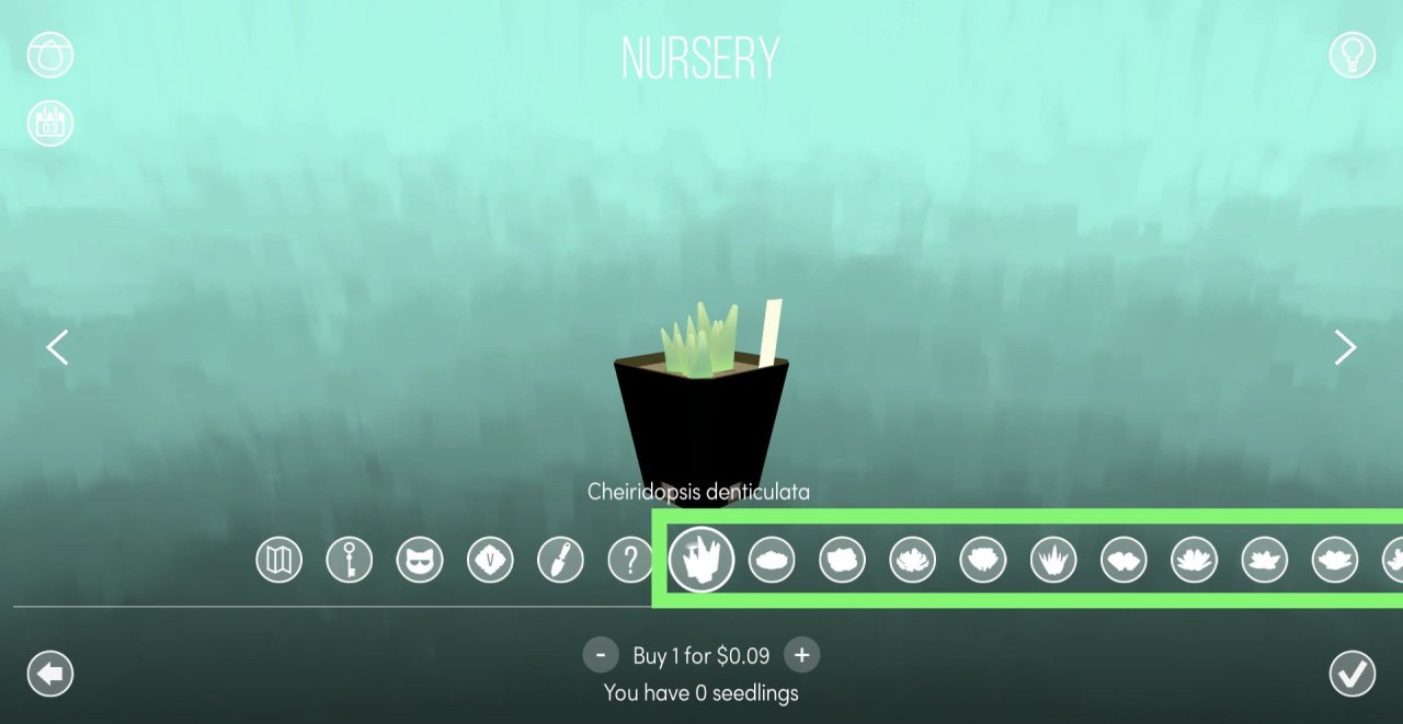 遊戲內總共有23種盆栽植物,每種植物形態不一,都有相關遊戲成就,而且還是英文名稱