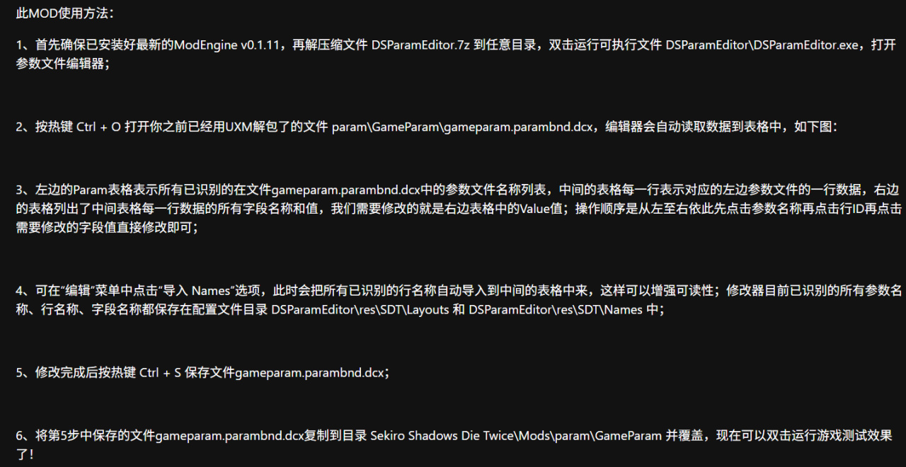 本文是针对 只狼:影逝二度 的 本体/mod 文件的修改教程。只会涉及一些浅显易懂的针对param文件基本修改教程归纳,门槛方面会一些简单英语即可,相信这会是很多人第一次的修改游戏文件操作。