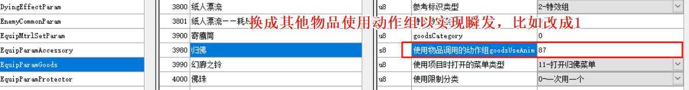 总之,可以按照自己的需求更改,更改的东西可谓是多种多样,这里不可能全都写出来,需要玩家自行摸索调试。那么到什么程度算得上熟练呢?———能做到不同词条之间的联动触发。同时如果有创新思维,那么玩法可谓是多种多样。比如如何通过只改参数值就能简单又快速的给动作添加一个无敌帧呢,可以给收伞之后加一个赤成珠并修改赤成珠的免伤数值,再比如在角色受击倒地后触发药丸/米/柿子等道具或者触发常时回血。这些都是可以只通过针对参数的修改而达成的。
