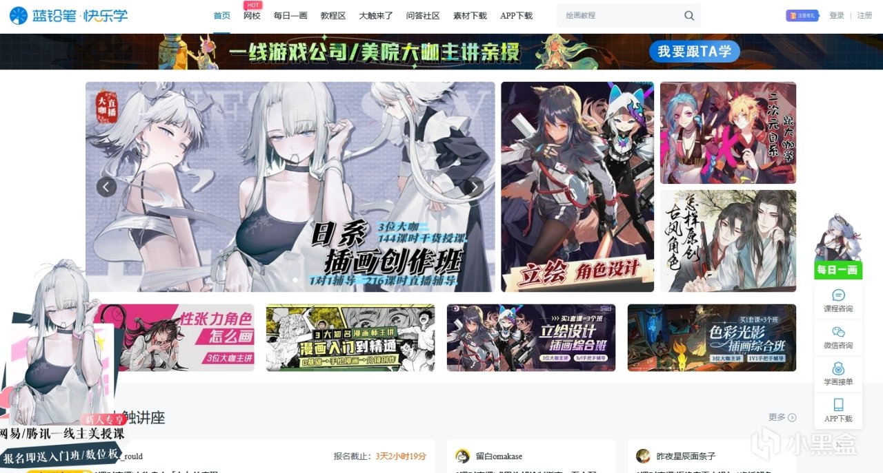 一个可以学习画画的网站;Q版、日系、古风、原画、人体等等,课程价格有三种形式:免费、收费、可兑换。