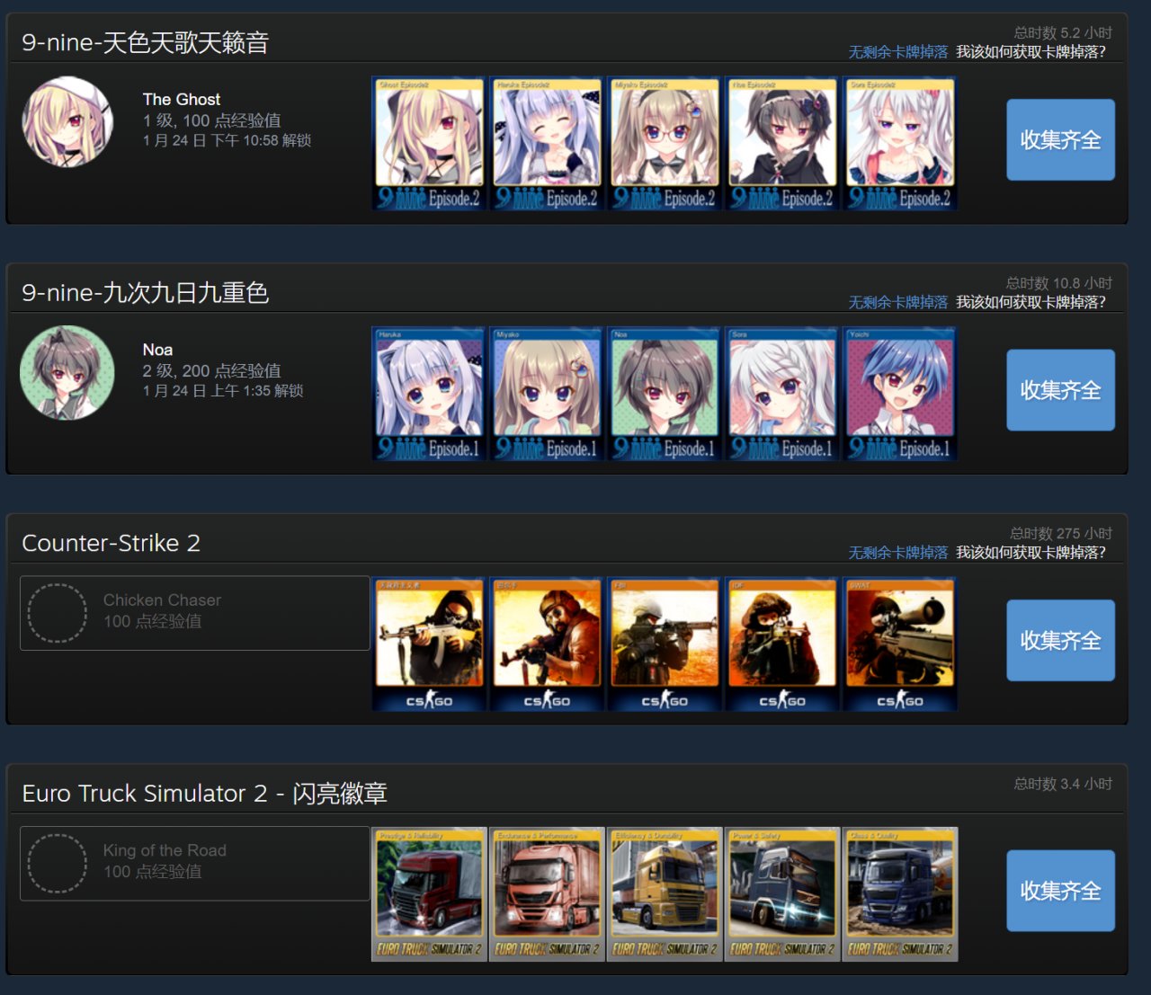 特别说明:不需要拥有某游戏才能合成该游戏徽章,只需要你凑齐一套卡就可以合成