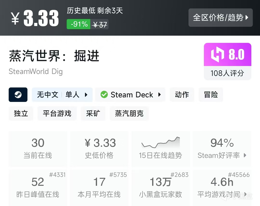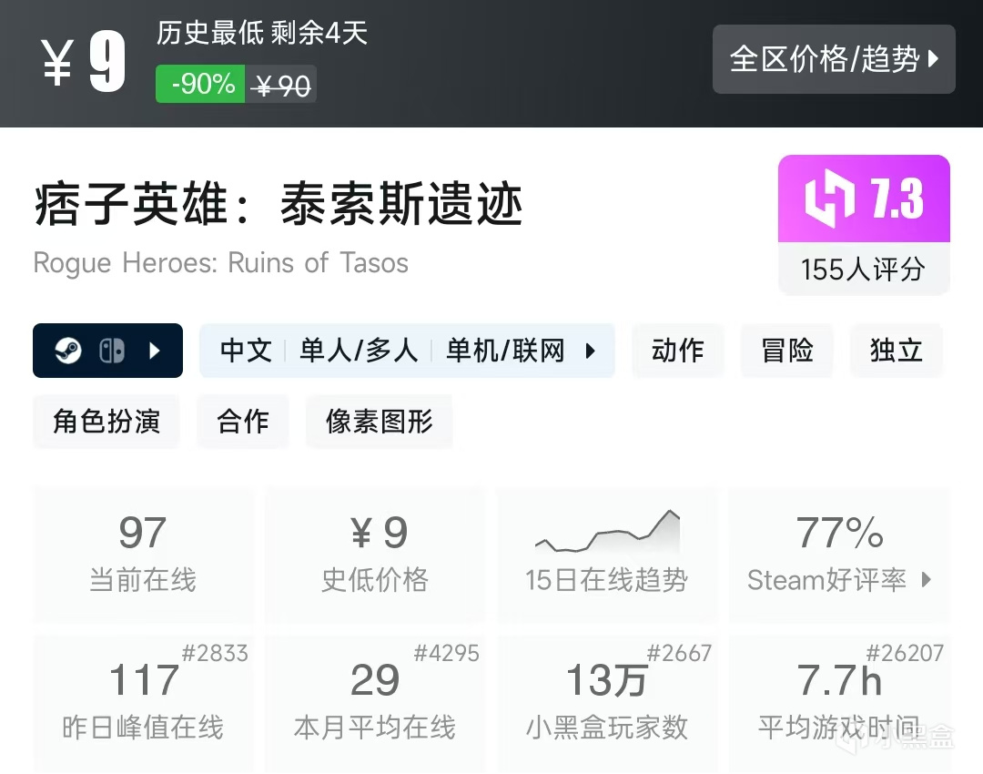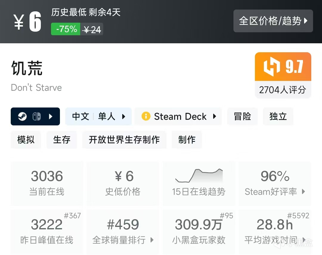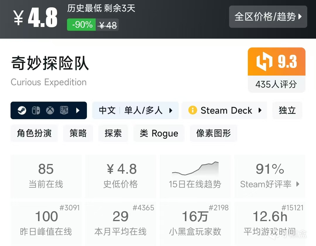 盒友們晚上好,我又來盤點史低折扣遊戲啦,最近有不少打折後個位數的,有新史低的,也有折扣時間僅剩一天的,大家可以看看~