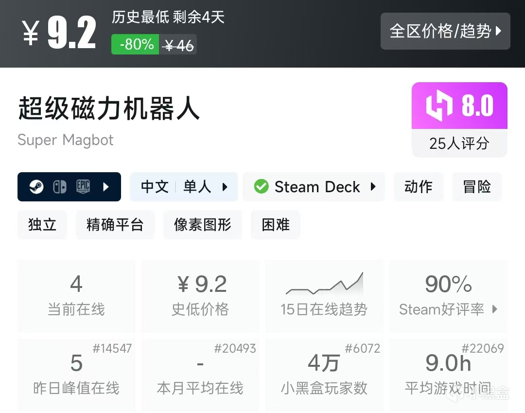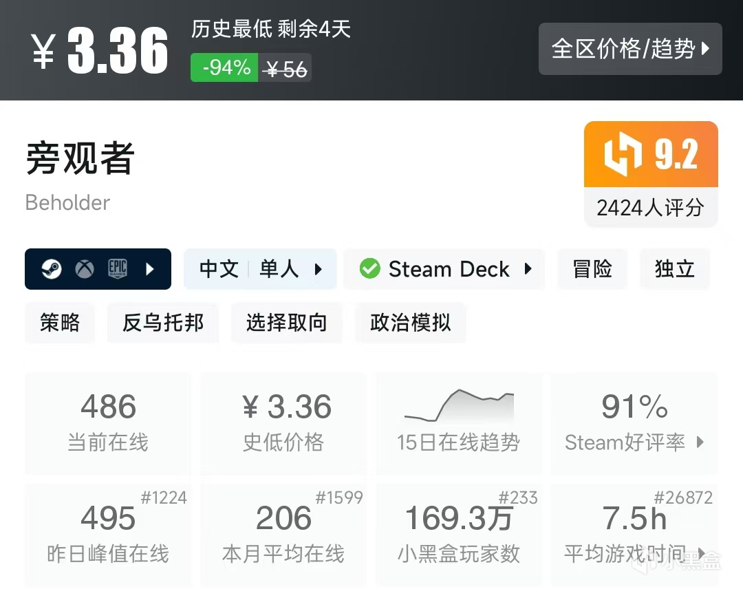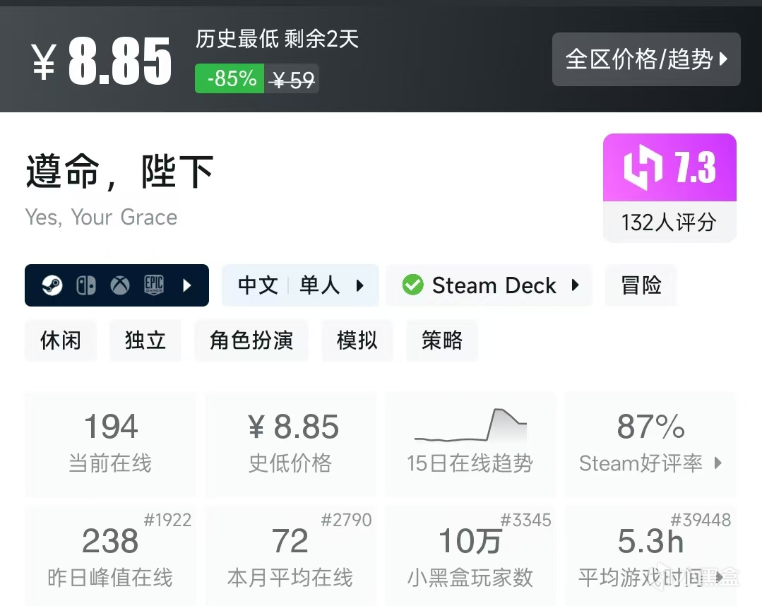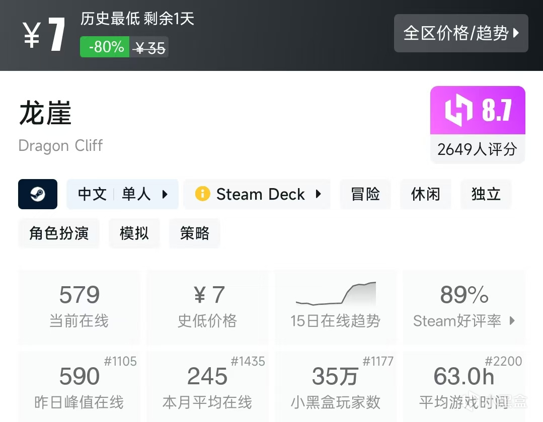 盒友們晚上好,我又來盤點史低折扣遊戲啦,最近有不少打折後個位數的,有新史低的,也有折扣時間僅剩一天的,大家可以看看~