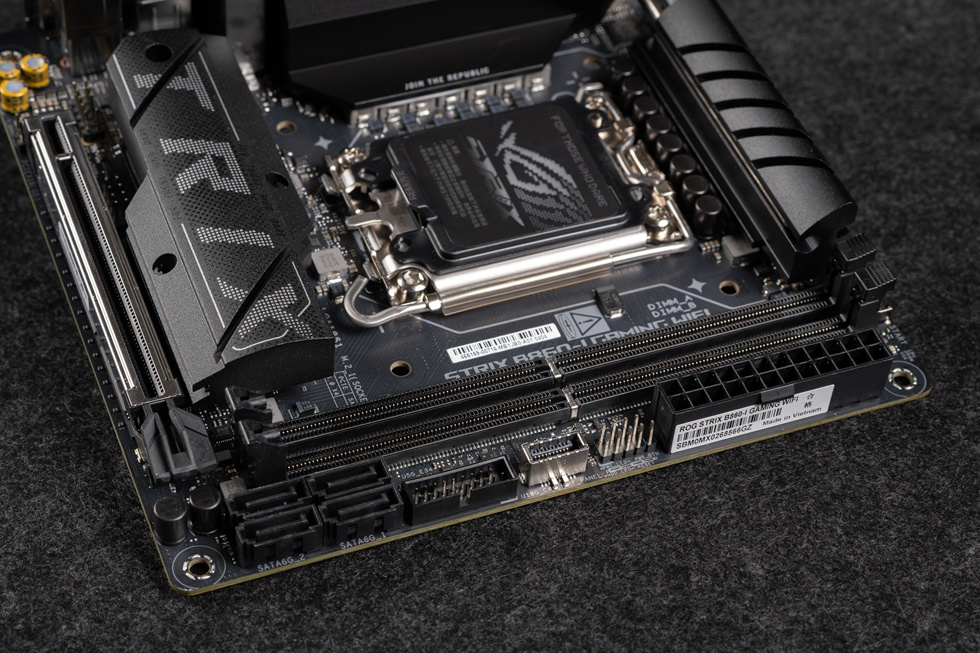 B860I主板採用了全新的馬甲設計語言,所有噴繪圖案均爲點陣設計,讓人眼前一亮。