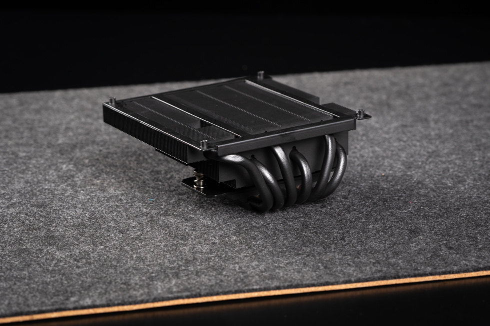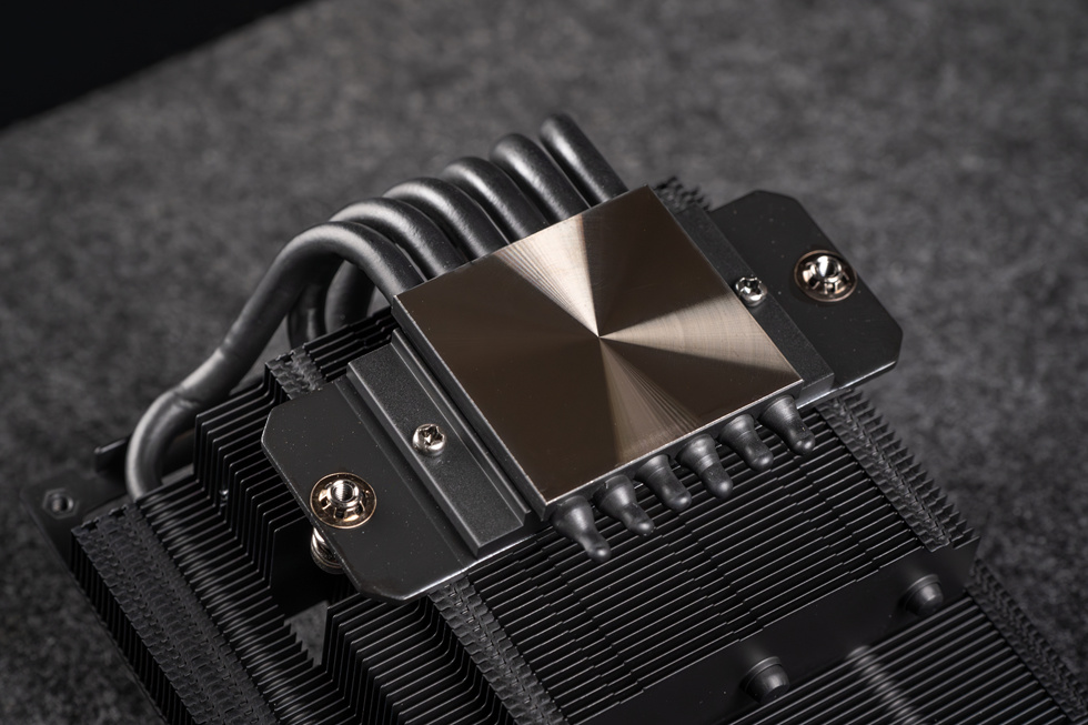 配有六根6mm鍍鎳銅熱管,從銅底座中吸收熱量,然後將熱量輸送到與主板水平排列的鋁製散熱片堆棧中。