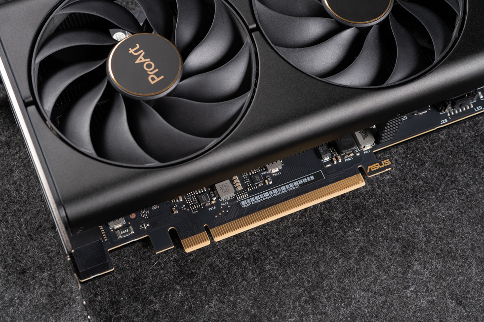 ProArt RTX 4080S 擁有緊湊的體積,顯卡三維尺寸爲:300mm*120mm*50mm,僅僅只有2.5槽的厚度,30cm的長度,兼容性非常不錯。顯卡背面安裝有黑色金屬背板,設計風格同樣相當簡潔,全覆蓋式背板不僅可以保護PCB,也可以輔助背面的散熱。背板尾端採用了大面積的鏤空設計,可讓散熱器獲得更好的通風效果,配合散熱上後延的大量鰭片,可以確保顯卡有較好散熱效果,並在尾部做了鏤空設計增加散熱效率,刻印PRO,並以字母“O”進行了特別設計,設計用心。
