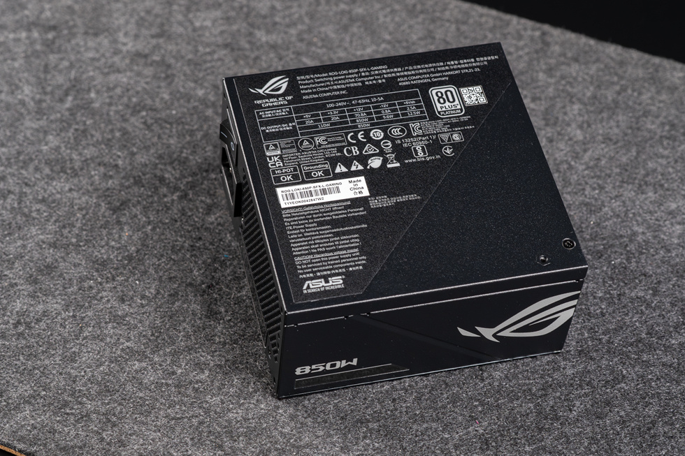 ROG LOKI 850W 電源額定功率爲850W,通過了80Plus鉑金認證,採用單路+12V輸出設計,其中+12V最大額定電流爲70A,相當於850W輸出功率,+5V與+3.3V最大額定電流均爲20A,聯合輸出功率則爲100W,支持100V至240V輸入電壓。
