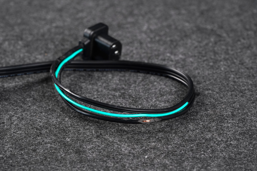 需要特別注意的是,在破皮過程中其實只需要用工具刀將中間這根輕輕剝離出來就行了,而且破皮的尺寸只需要將導線槽壓制的那一段破皮即可,千萬不要多次一舉再動旁邊的那兩根,因爲旁邊的兩根和中間這根包皮結構是不一樣的,所以這根線也徹底被我折騰廢了。