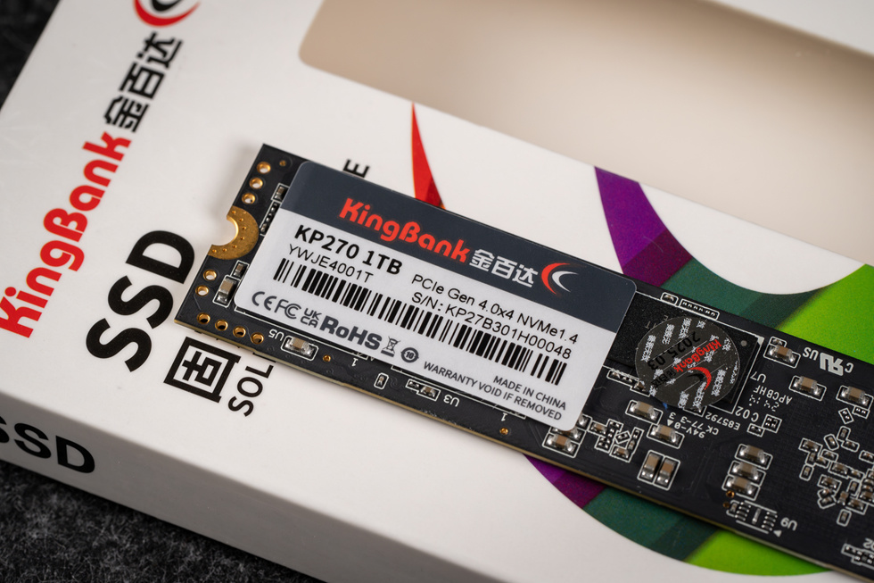 SSD固態硬盤選擇的是金白達最新推出的KP270 1T,KP270屬於金百達旗下刃系列的M.2 2280固態硬盤,支持PCIe 4.0x4。外包裝採用彩盒包裝,正面做了透視小開窗,可以看到固態本體