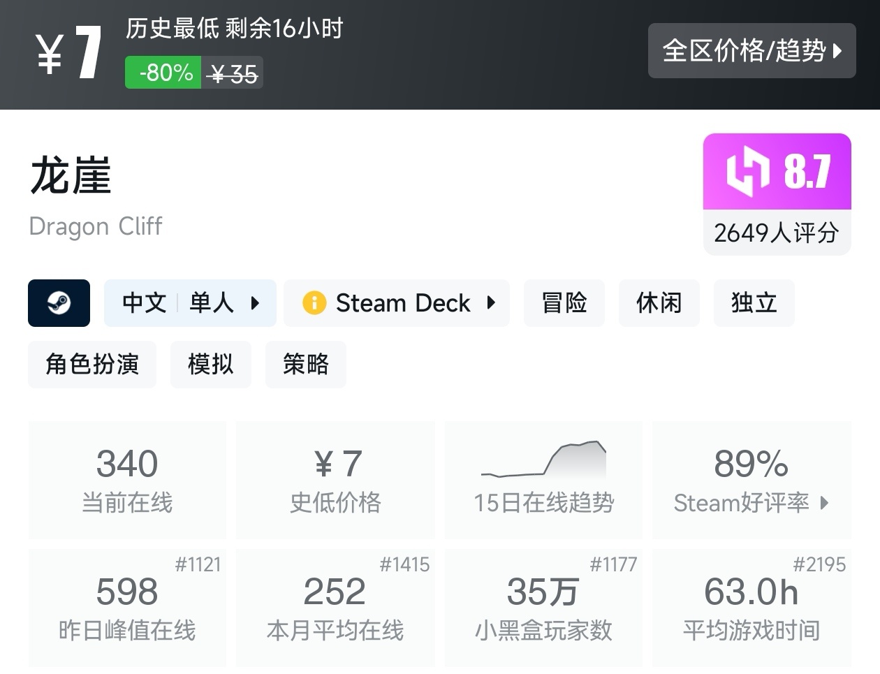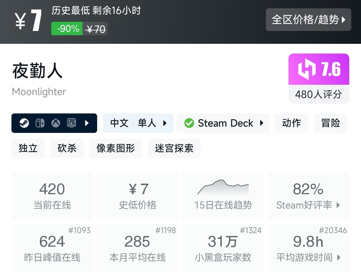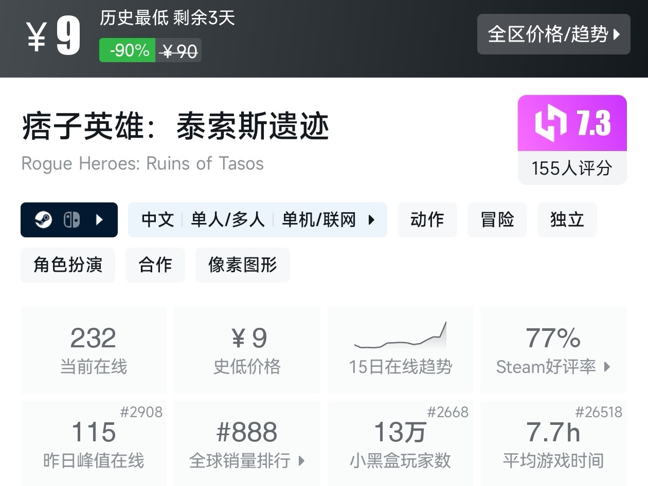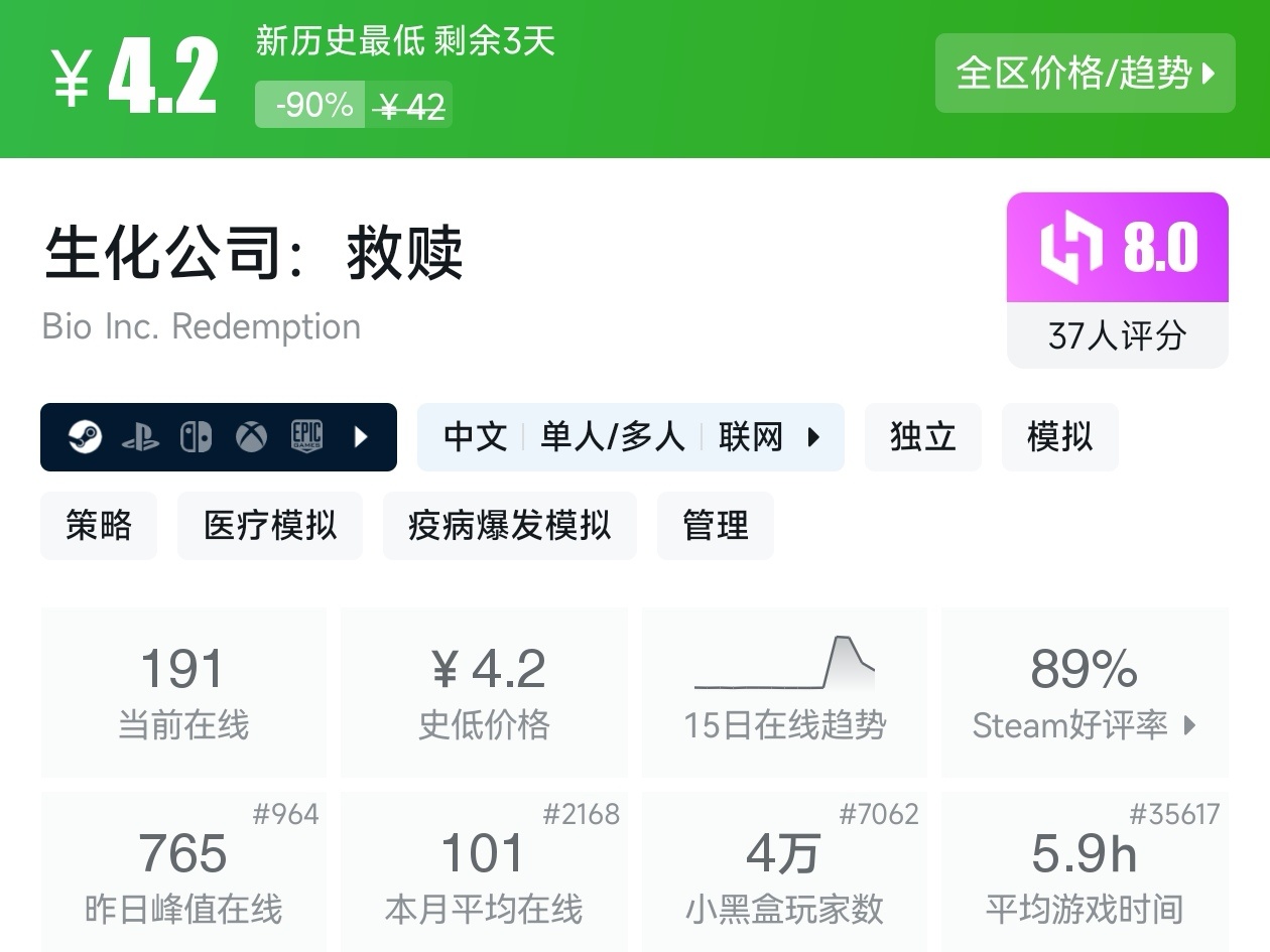 大家好,沒錯,又是我,你們的老朋友亦然,今天這期帖子,如你所見,是一期10元以下的折扣遊戲彙總,有很多不錯的遊戲,可以說好玩不貴,經濟實惠,我將爲各位進行一個彙總,希望我的彙總,能夠幫助各位盒友挑選心儀的遊戲。