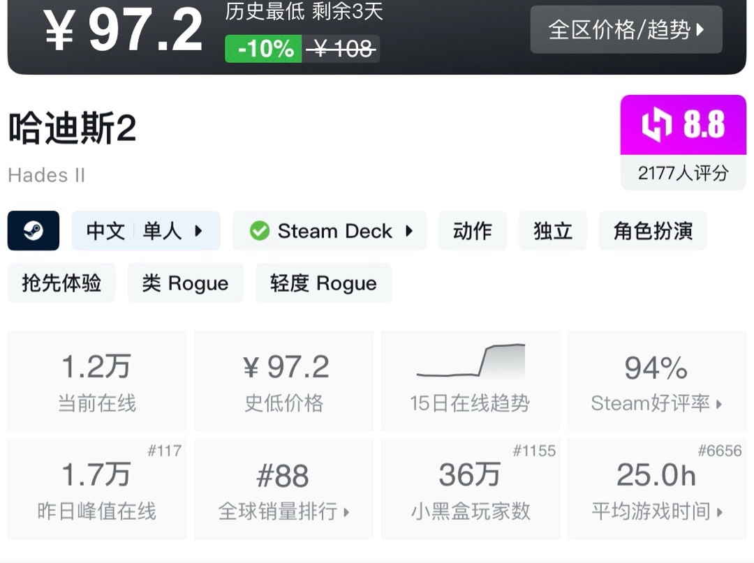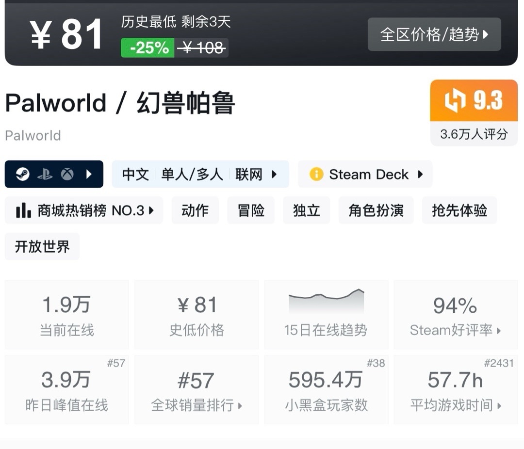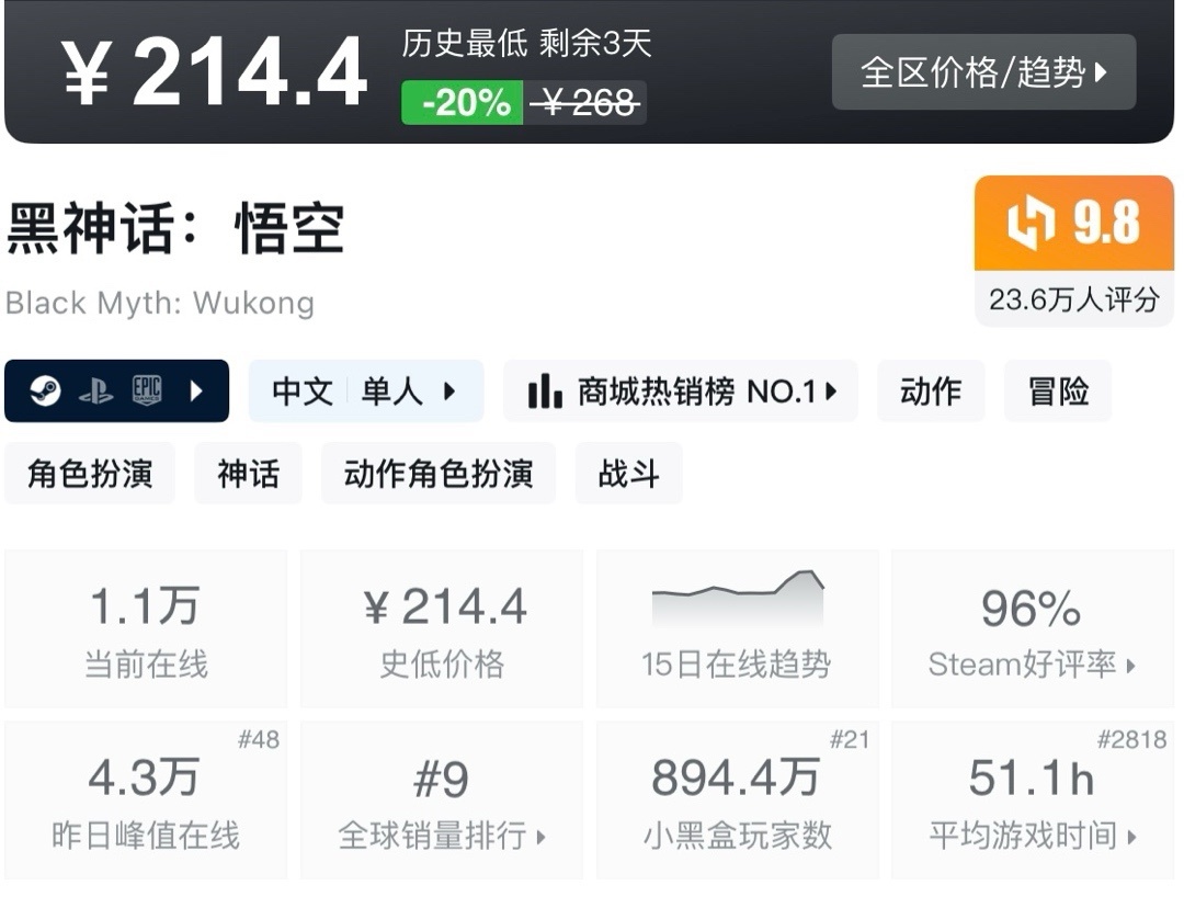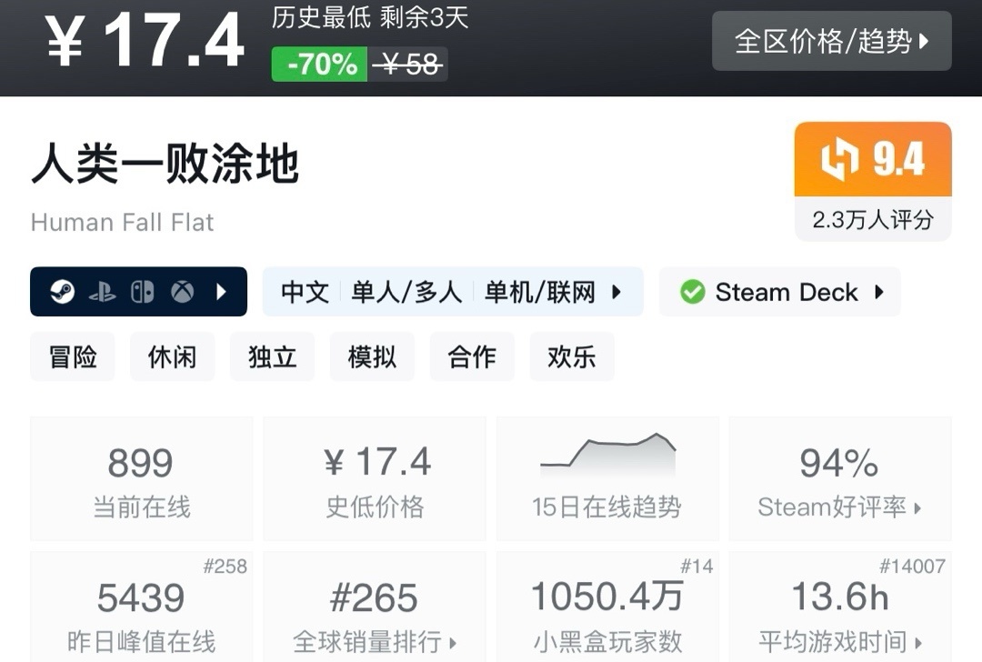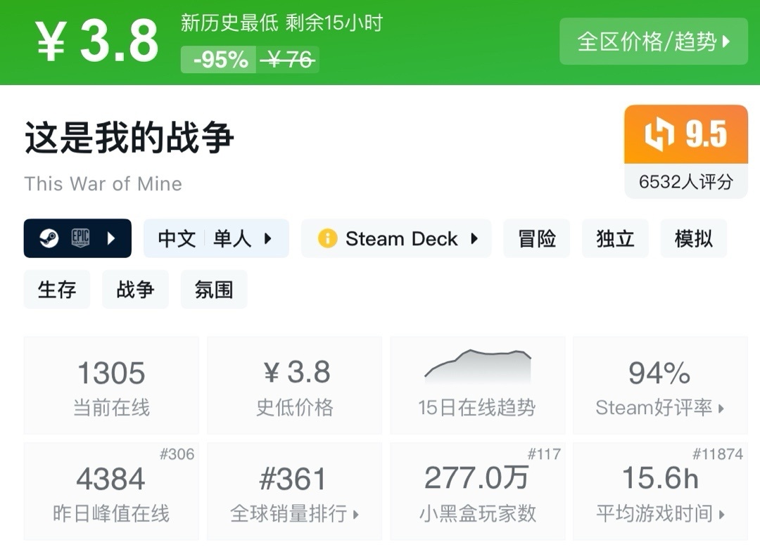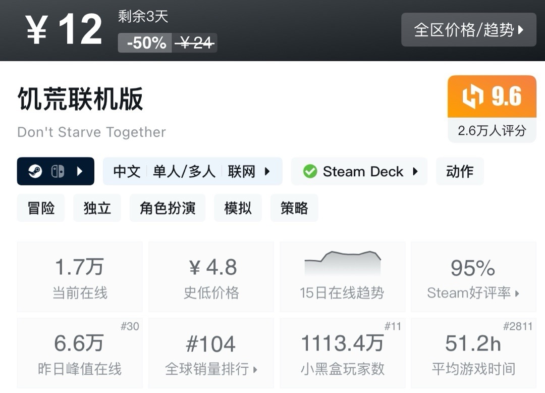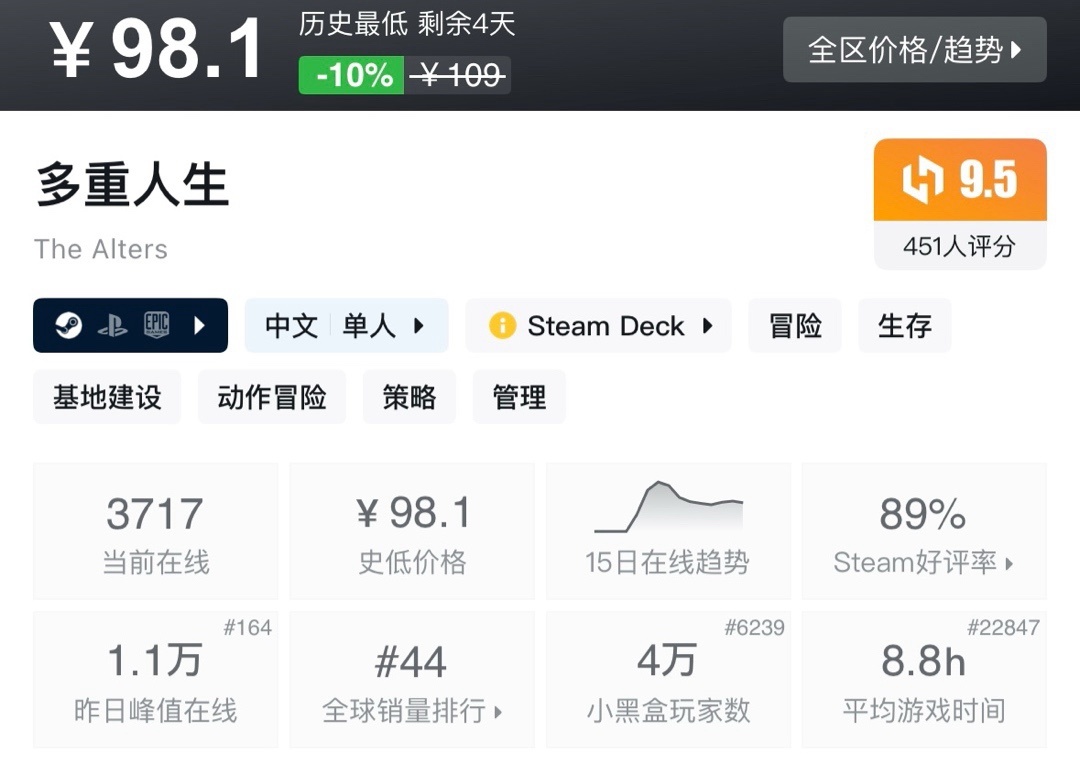 上次周年新史低,最近也是没回复。夏促应该就这样了!不多介绍了生存巅峰!